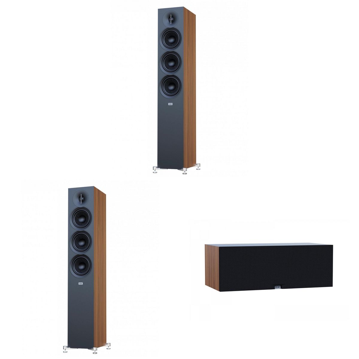 Elac Debut 3.0 Walnut 5.25 Inch Towers With 5.25 Inch Center