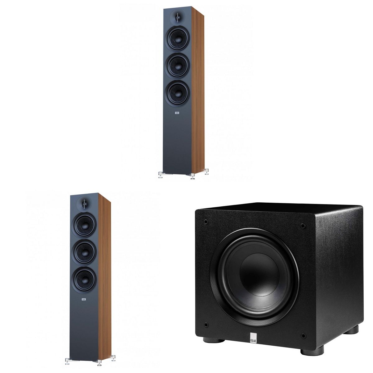 Elac Debut 3.0 Walnut 6.5 Inch Towers With Elac Varro 10 Inch Subwoofer