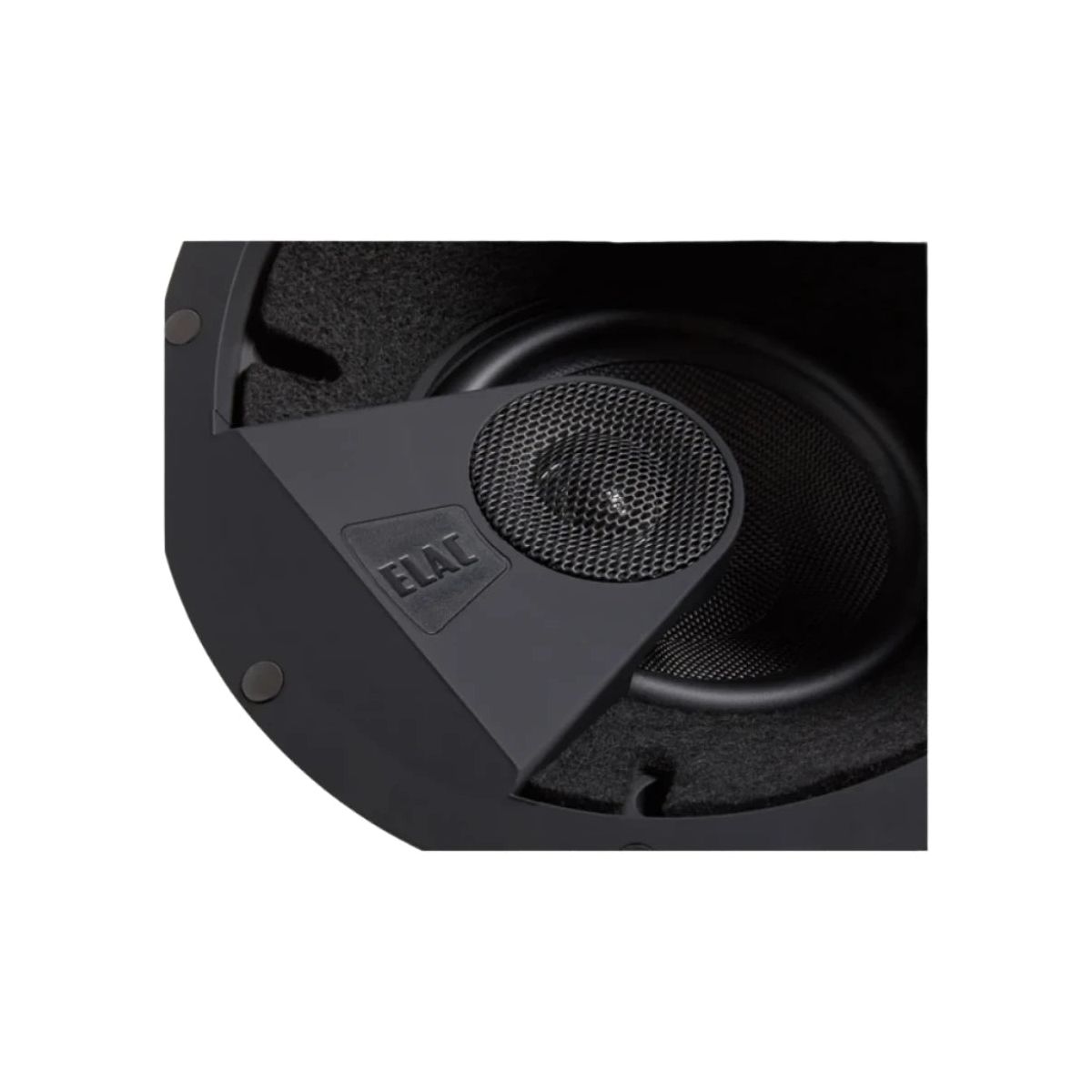 Enjoy hyper-realistic perspectives on music and movies: Andrew jones-designed Elac Debut IC-DT61-W custom in-ceiling loudspeaker has drivers angled at 30 degrees, disappears from view get an excitingly new perspective on your music and movies courtesy of Elac's versatile Debut IC-DT61-W custom in-ceiling loudspeaker with angled drivers. Providing heightened sonic realism by way of drivers angled at 30 degrees, IC-DT61-W delivers overachieving performance Whether used as a front, side, or rear speaker. Designed by Andrew Jones, and based on Elac 's groundbreaking Debut Series B6 bookshelf loudspeaker, this custom-tailored instrument specializes in preserving the imaging, detail, and nuance critical to audiophile sound. Aesthetically, IC-DT61-W gives you the advantage of virtual invisibility as well as the ability to place it practically anywhere ‐ turning any room into the equivalent of a Sonic temple. Just as he did for Debut Series B6, Jones custom-designed the tweeter and bass drivers in IC-DT61-W, which boasts a 6.5-Inch woven aramid-fiber woofer with oversized magnets. A cloth-dome tweeter, deep-spheroid waveguide, customized six-element crossover, magnetic metal grille, and robust molded cabinets also come standard.