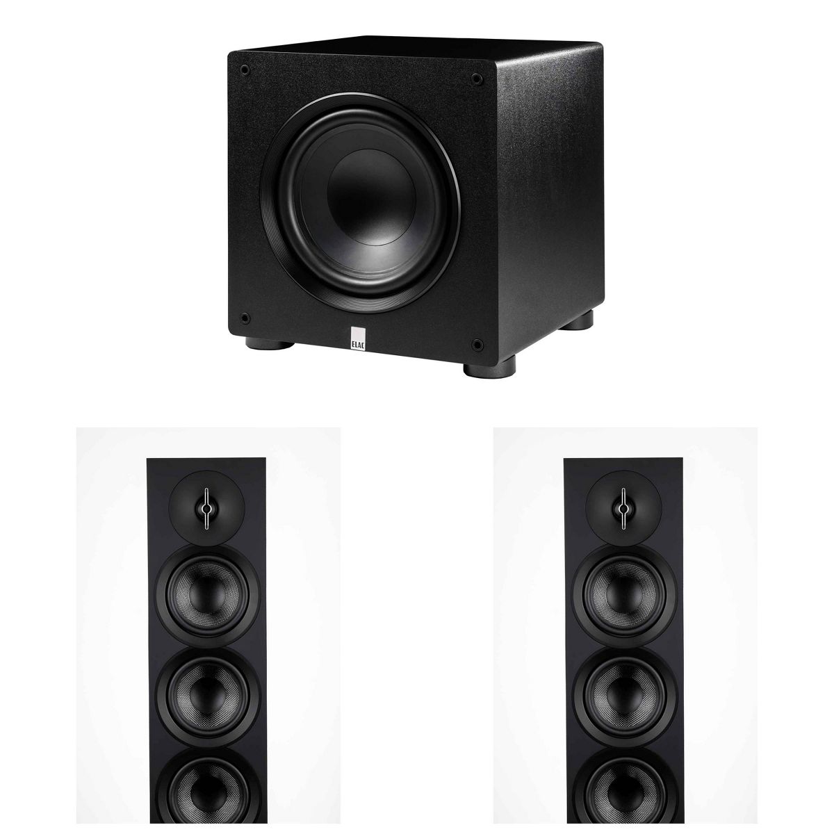 Elac DF53-BK - Debut 3.0 5.25" Floor Speaker - Black and Elac PS350-BK - Varro Premium 12" 350 Watt Powered Subwoofer with Auto-EQ