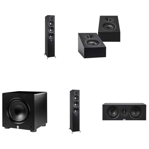 Elac DF53-BK - Debut 3.0 5.25" Floor Speaker - Black (Pair), ELAC DA43-BK Debut 3.0 - DA43-BK Atmos / On Wall speaker, Elac PS250-BK - Varro Premiu...