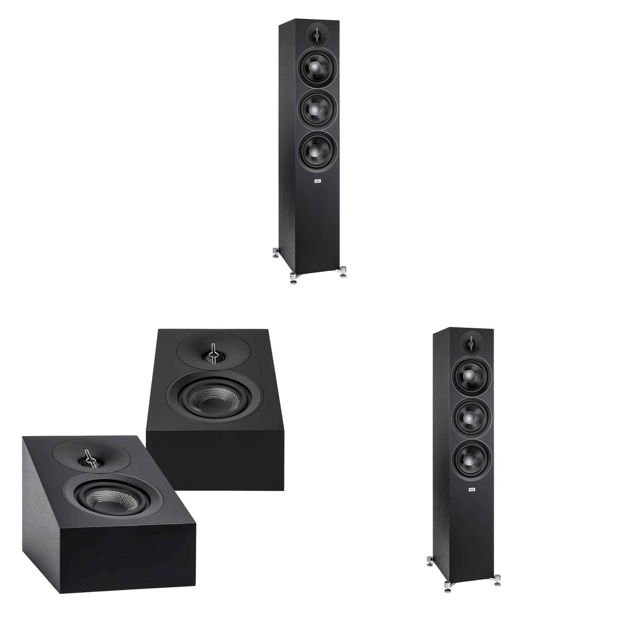 Elac DF63-BK - Debut 3.0 6.5" Floor Speaker - Black (Pair), and ELAC DA43-BK Debut 3.0 - DA43-BK Atmos / On Wall speaker