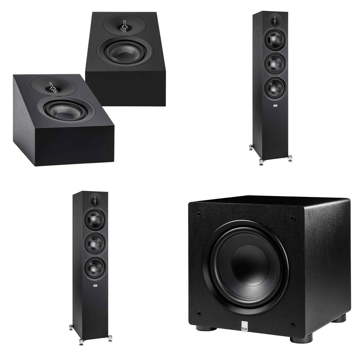 Elac DF63-BK - Debut 3.0 6.5" Floor Speaker - Black (Pair), ELAC DA43-BK Debut 3.0 - DA43-BK Atmos / On Wall speaker, and Elac PS250-BK - Varro Pre...