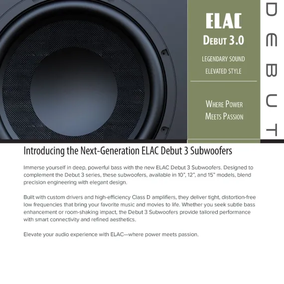 ELAC DS153-BK 15" Debut 3.0 Powered Subwoofer delivers an uncompromising low-frequency foundation for your music and movies.