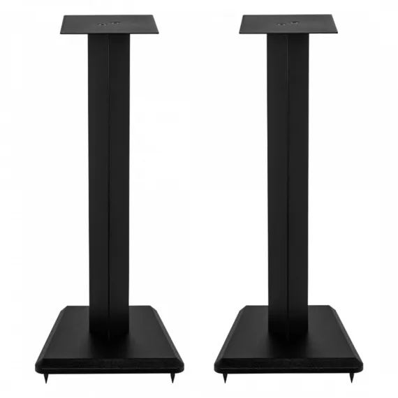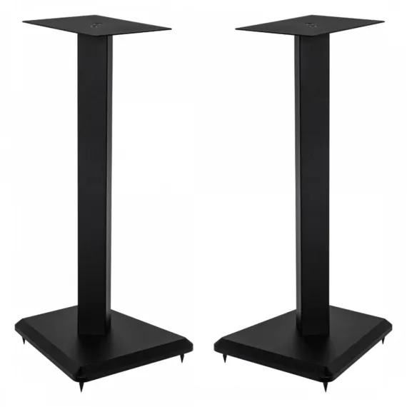 The Elac LS10-B speaker stands are designed for the Debut 2.0 and Uni-Fi 2.0 lines, with a steel top plate, aluminum column, and MDF base plate providing stability. They include rubber bumpers, spikes, and adjustable feet, accommodating carpet and solid floors. Dimensions: Stand Height 23", Base 9.75", Weight 5.5 lbs each, Quantity: Pair. Ideal for enhancing your speaker setup.
