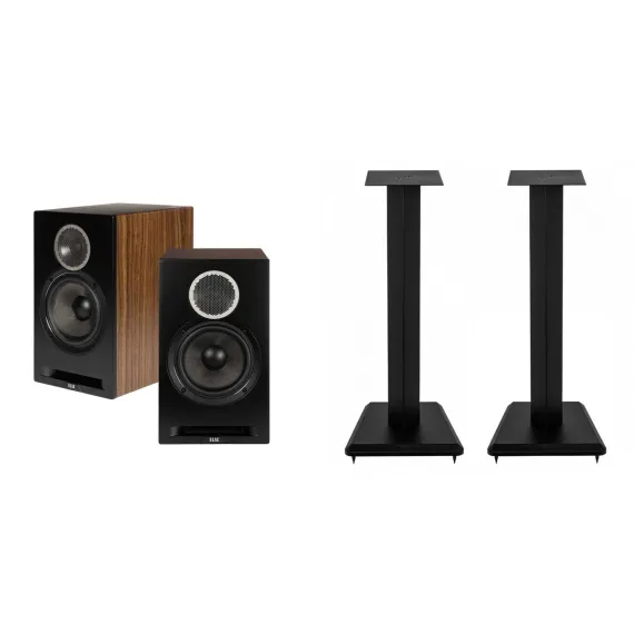 This bundle includes an Elac LS10-B - 23" Steel and Wood Speaker Stands - Black, Pair, and an Elac DBR62-BK - Debut Reference 6.5" Bookshelf Speakers - Black, Pair.