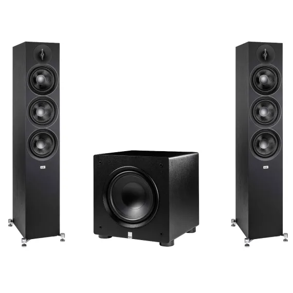 Elac - Two DF63-BK - Debut 3.0 6.5" Floor Speaker - Black and Elac PS250-BK - Varro Premium 10" 250 Watt Powered Subwoofer with Auto-EQ