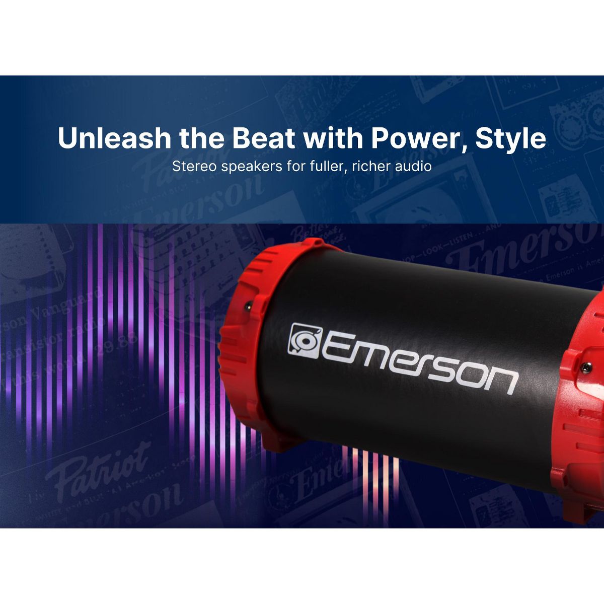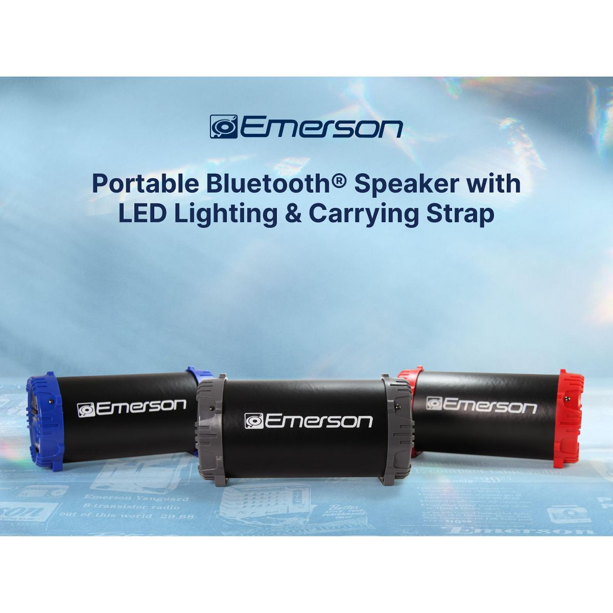 Emerson EAS-3001 Portable Bluetooth Speaker with LED Lighting & Carrying Strap, Red