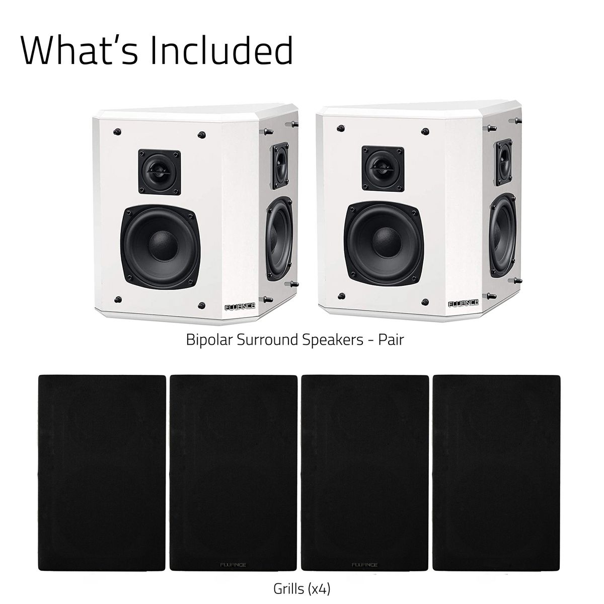 Fluance Elite High Definition 2-Way Bipolar Surround Speakers for Wide Dispersion Surround Sound - White