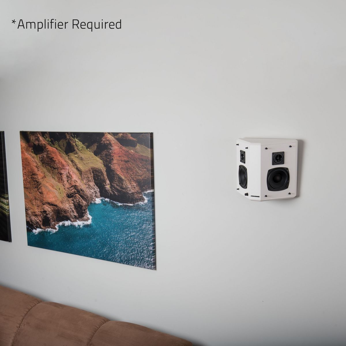 The unique configuration of the bipolar speakers creates a 3D soundstage. This is achieved by having two complete full-range speaker systems on opposing sides of the cabinet. The results are widespread, enveloping surround sound throughout your room. The Elite bipolar speakers are designed for placement beside or behind the listeners for an extremely convincing 5.1/6.1/7.1 surround ambiance. Each speaker has a power handling range of 20-100 Watts RMS.