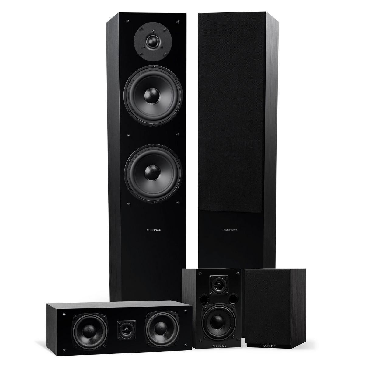 Fluance Elite High Definition Surround Sound Home Theater 5.0 Speaker System - Floorstanding, Center, and Rear Speakers - Natural Walnut