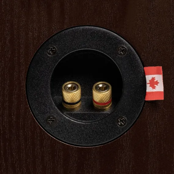 The meticulously crafted, acoustically inert wood enclosure features front firing bass ports for controlled low-frequency bass response.