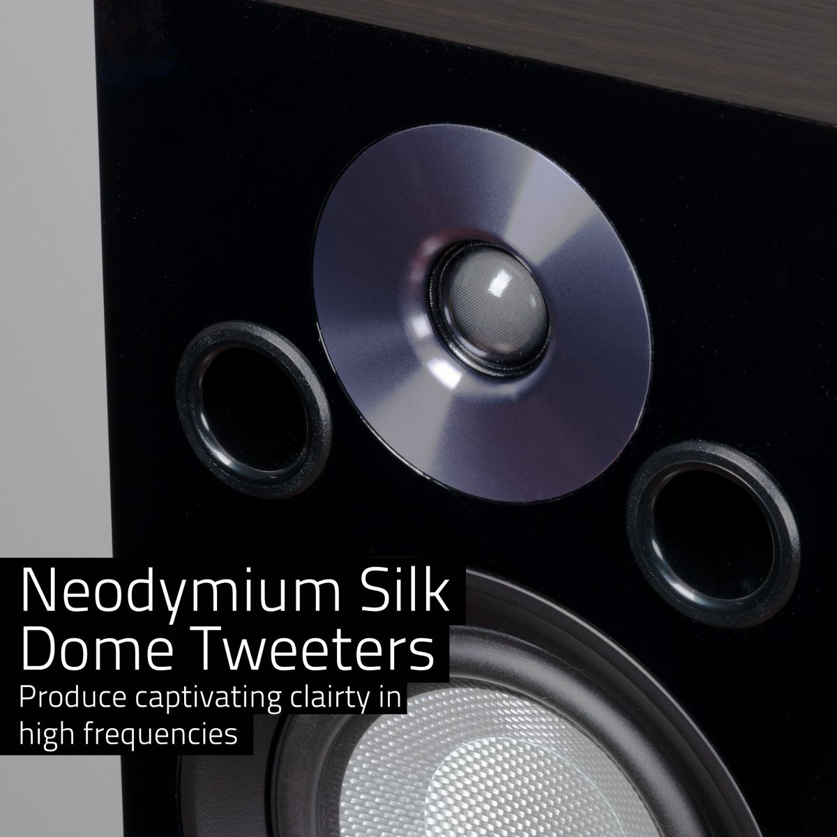 The premium neodymium silk dome tweeters produce clean, detailed high frequencies while providing spacious off axis dispersion allowing you to hear beautifully expressed highs anywhere in the room.