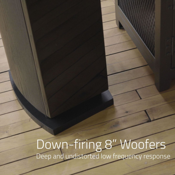 Utilizing unique down-firing 8" subwoofers that reproduce exceptionally deep and undistorted bass response so you can experience a lively full range performance.