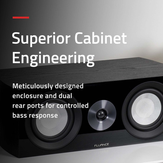 The meticulously designed acoustically inert wood cabinets have rigid internal bracing preventing unwanted resonance and is composed of separate internal enclosures keeping sound waves isolated to eliminate any acoustic interference. Dual rear ports in the woofer enclosures provide a controlled low-frequency response.