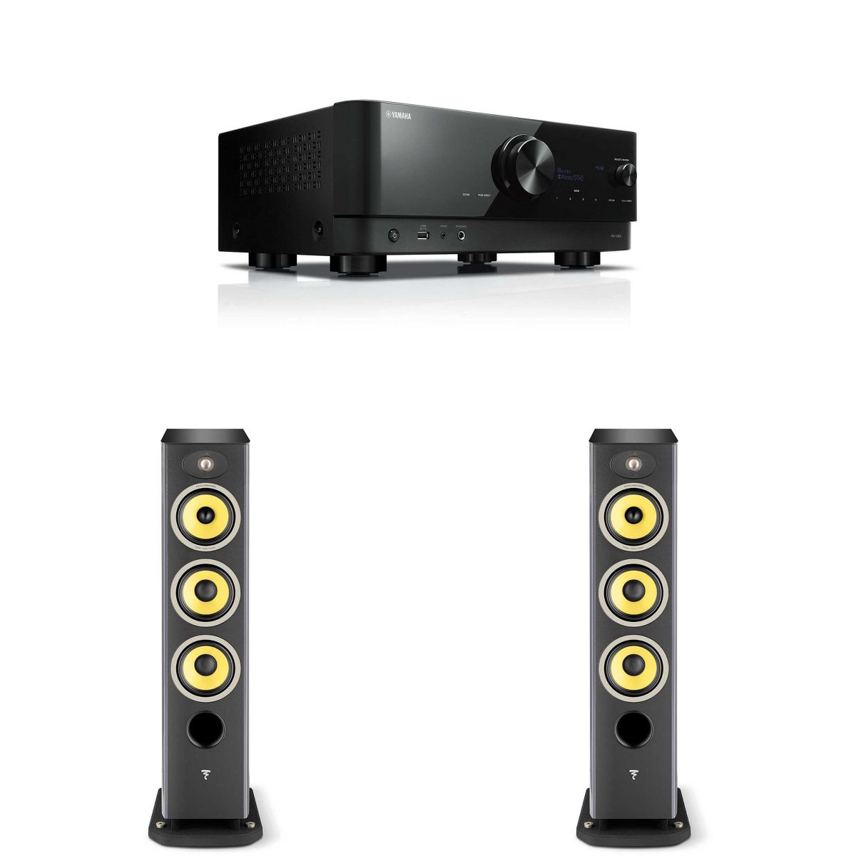 Focal Aria K2 926 Ash Grey (Limited Edition) 3-Way Floorstanding Audiophile Tower Speaker - PAIR, with RX-V6ABL 5.2-Channel AV Receiver with 8K HDM...