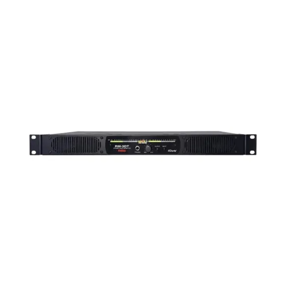 Model RM-3DT is a powered rack-mount monitor with Dante* audio network function.