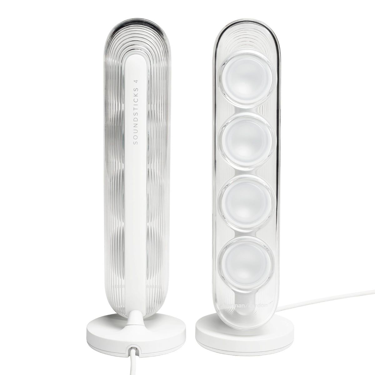 Extraordinary Harman Kardon Sound In A Timeless Iconic DesignWelcome a timeless icon into your home with Harman Kardon SoundSticks 4. Extraordinary sound meets sculptural design in this one-of-a-kind audio masterpiece from the legendary Harman Kardon brand. Bring harmony into your living space with unparalleled sound quality and beautiful transparent materials. Highly regarded as a true work of art by passionate audio enthusiasts around the globe Harman Kardon SoundSticks 4 is a stunning system that fills your space with vibrant treble and incredible bass. Transform the look and sound of your life and experience music in a new exceptional way.