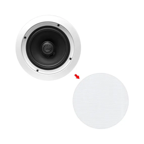 In-Ceiling Speaker System for Home Audio with Dual 6.5" Drivers, Easy Install, White, Pair
