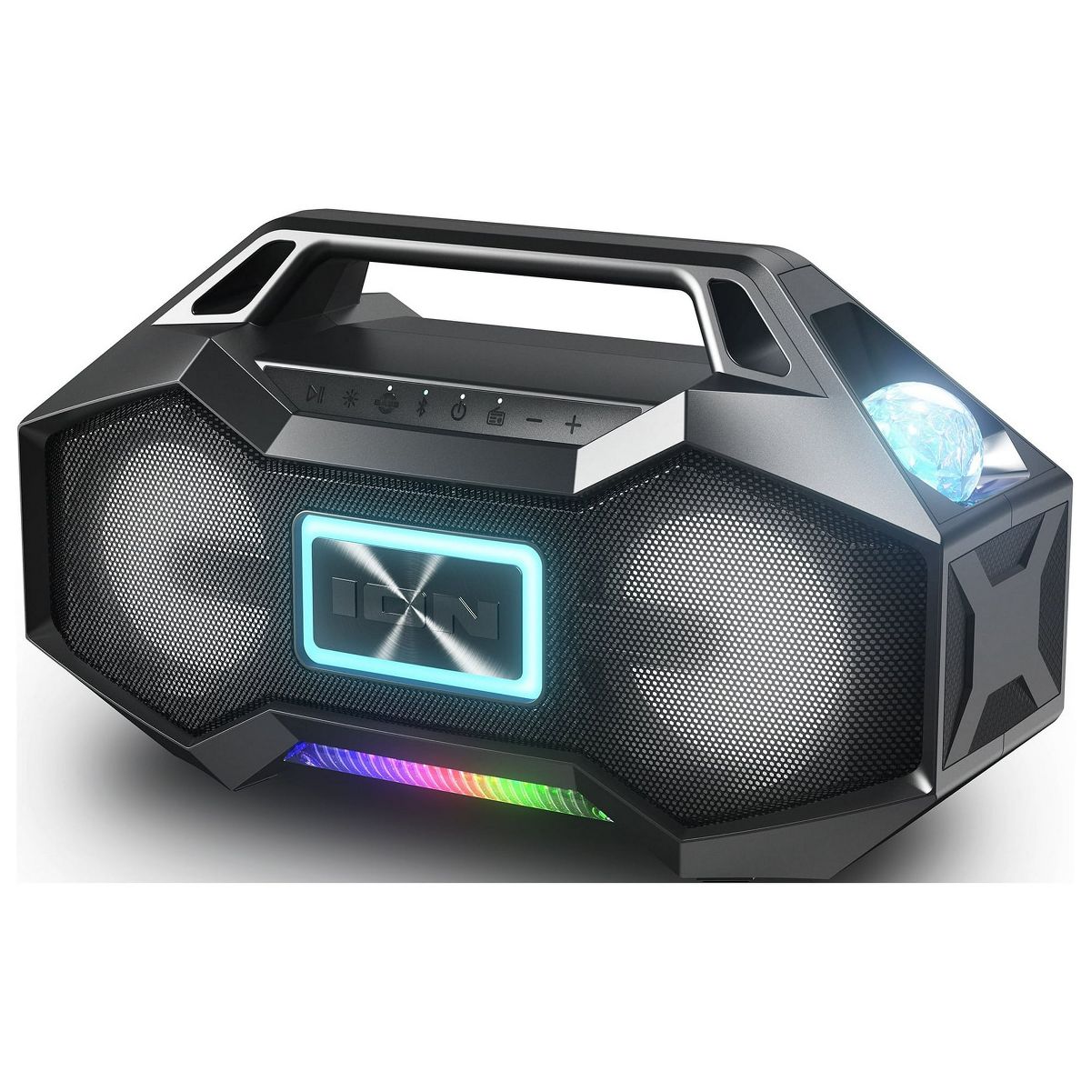 ION’s Party Rocker Go Bluetooth boombox LED speaker with Party Starter Lights is the ultimate party LED speaker. A powerful Bluetooth boombox LED speaker that is perfect for partying on the go. ION’s portable Bluetooth speakers with built-in party lights give you the opportunity to have an instant party anywhere you are.