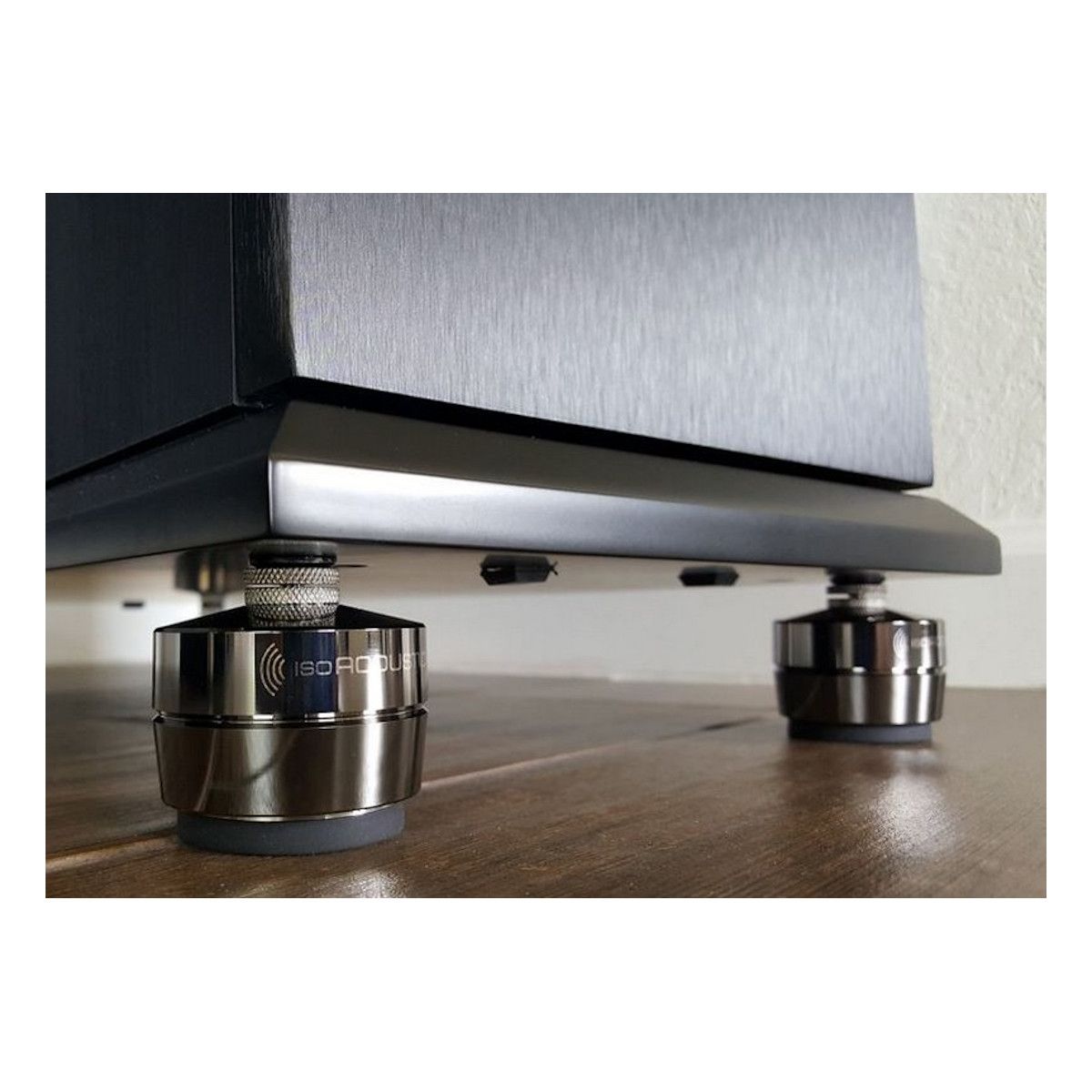 The GAIAs are threaded into the base of the speaker or subwoofer to replace the existing spikes or feet. Threading the GAIAs into the base of the speaker creates a strong connection with the speaker. With the top of the GAIA housing connected with the speaker and the bottom of the GAIA connected to the supporting surface all of the energy is then managed by the GAIAs internal isolator.