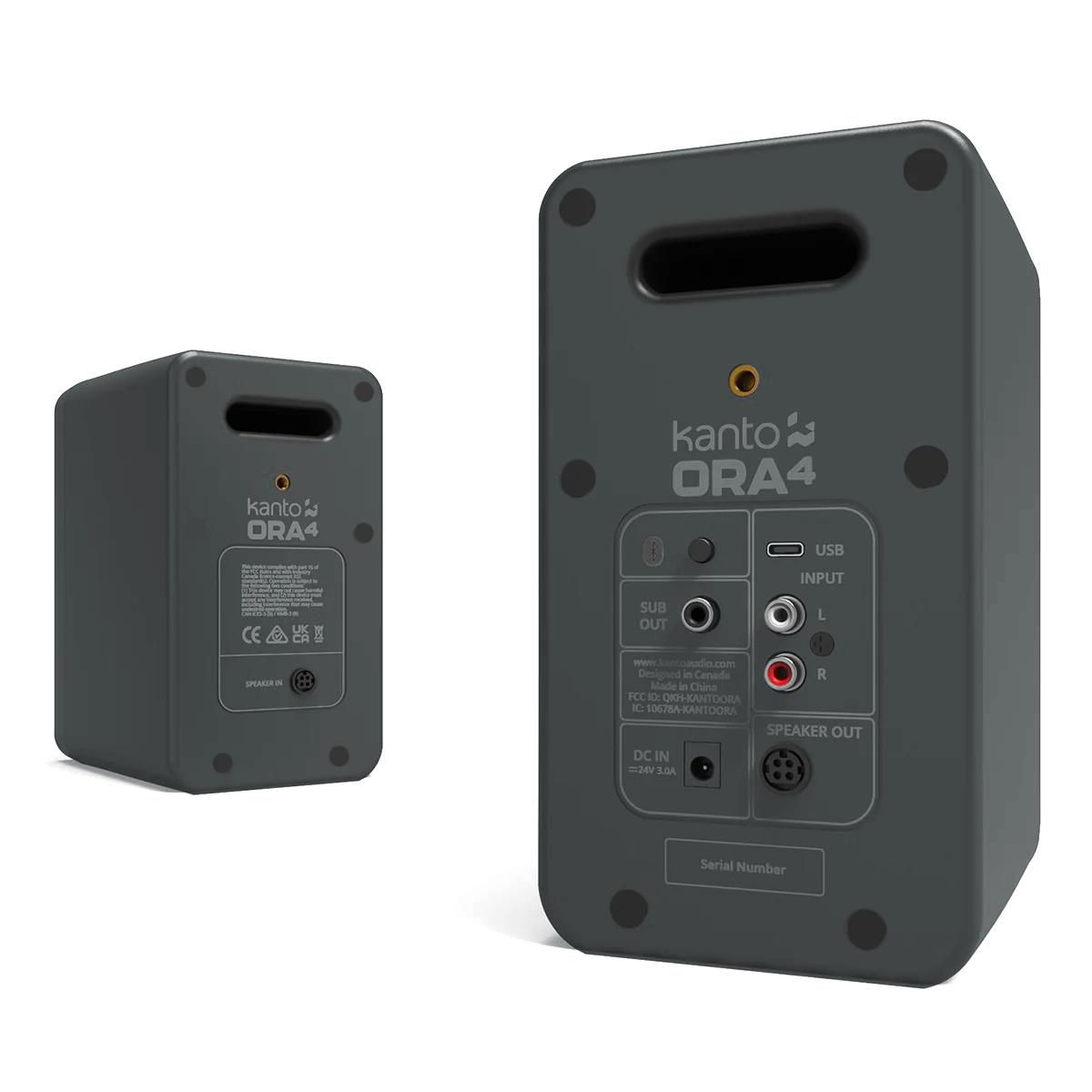 Pro Audio for The PeopleORA4 takes the legacy of ORA to the next level by pushing bass extension even deeper while maintaining the same great reference-quality sound. Leaning further into the world of pro audio ORA4 offers a flat full-range frequency response to ensure mixes are dialed-in and music sounds true-to-life. USB-C gives you a bit-perfect connection to your PC or Mac Bluetooth 5.0 lets you wirelessly stream from a phone or smart home device and RCA allows you to connect analog gear. When a subwoofer is plugged in ORA4 automatically applies a high-pass filter to the 4” woofers keeping distortion at bay. ORA4 takes a no-nonsense approach to delivering studio-grade sound with modern features at a manageable size - perfect for nearly any scenario you throw it in.