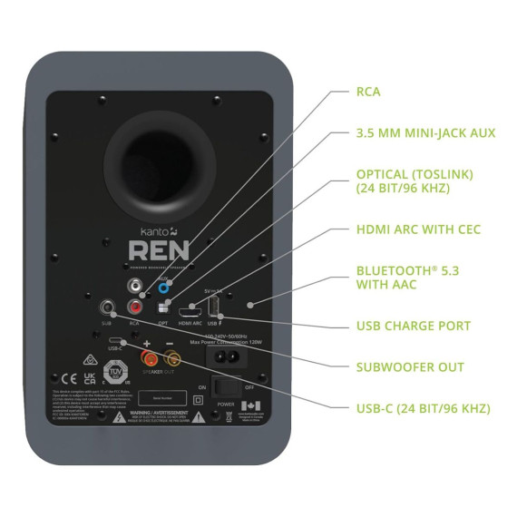 The Simplicity of a Soundbar the True Sound of Stereo.Combining the simplicity of a soundbar with the accuracy of a DSP-controlled stereo system REN seamlessly integrates with any modern TV via HDMI ARC delivering a home theater-like experience in one streamlined package. REN tackles the frustration of quiet dialogue and overwhelming sound effects with two sound modes that boost vocals and reduce low frequencies for nighttime viewing. When it’s time to add a subwoofer REN automatically filters sub-bass from its 5.25” aluminum woofers letting them focus on midrange frequencies with minimal distortion. REN offers versatility beyond the living room with Bluetooth 5.3 for smart home devices optical for WiFi network streamers USB-C for desktop use and analog inputs for everything else.