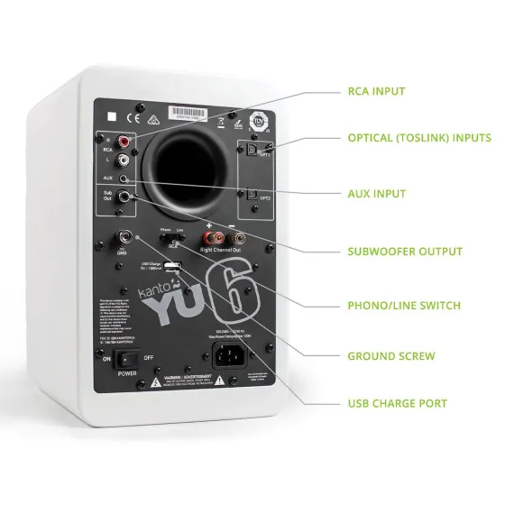Undeniably LoudSatisfy your craving for powerful full-impact sound with YU6. Armed with a formidable Class D amplifier pumping out 200W peak power YU6 will have you questioning what it really means to be loud. Its 5.25 Kevlar drivers and 1 silk dome tweeters inject detailed sound into every square inch of living space evoking emotions that can only be expressed with an ear-to-ear grin. A built-in phono preamp makes it easy to spin your favorite tunes while Bluetooth connectivity lets you keep the party going from the palm of your hand.