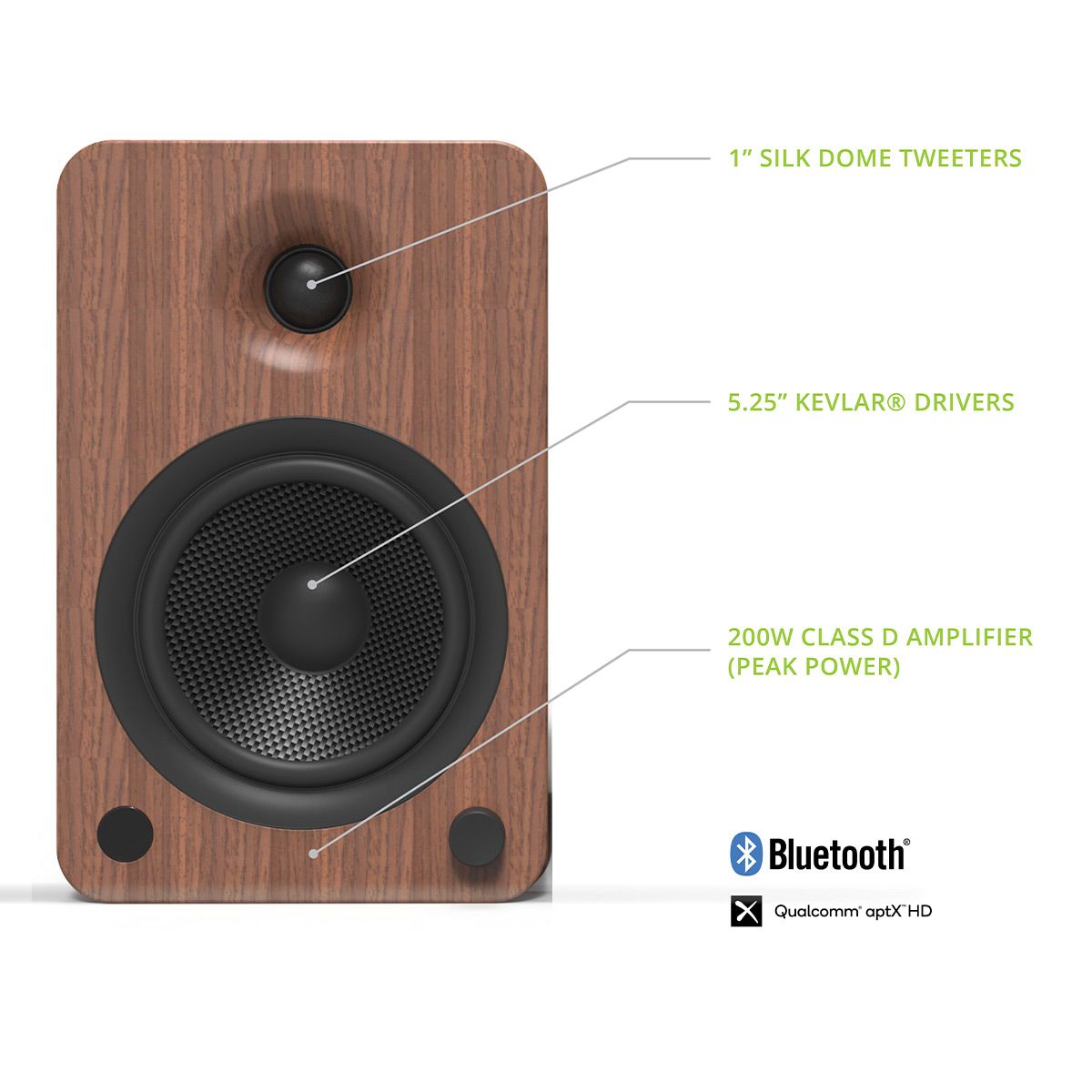 Undeniably LoudSatisfy your craving for powerful full-impact sound with YU6. Armed with a formidable Class D amplifier pumping out 200W peak power YU6 will have you questioning what it really means to be loud. Its 5.25 Kevlar drivers and 1 silk dome tweeters inject detailed sound into every square inch of living space evoking emotions that can only be expressed with an ear-to-ear grin. A built-in phono preamp makes it easy to spin your favorite tunes while Bluetooth connectivity lets you keep the party going from the palm of your hand.