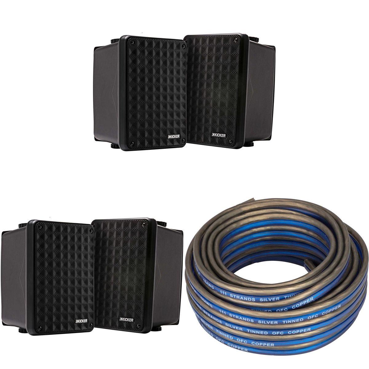 Elevate your audio experience with this premium bundle featuring 1x Kicker 46KW1620 K-Series 16AWG Speaker Wire, 20 FT, and 2x Kicker KB6B Black 2-Way Indoor Outdoor Speakers. The K-Series speaker wire ensures easy installation with its Frost Blue and Frost Clear identification for positive terminals. This premium 16 Gauge wire allows seamless connection to your speakers and amps, delivering excellent signal transfer and sonic accuracy.