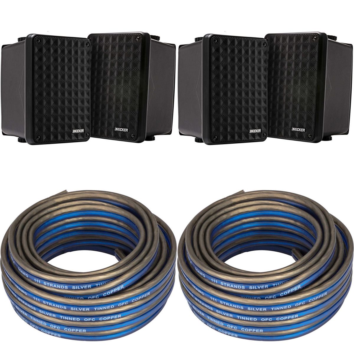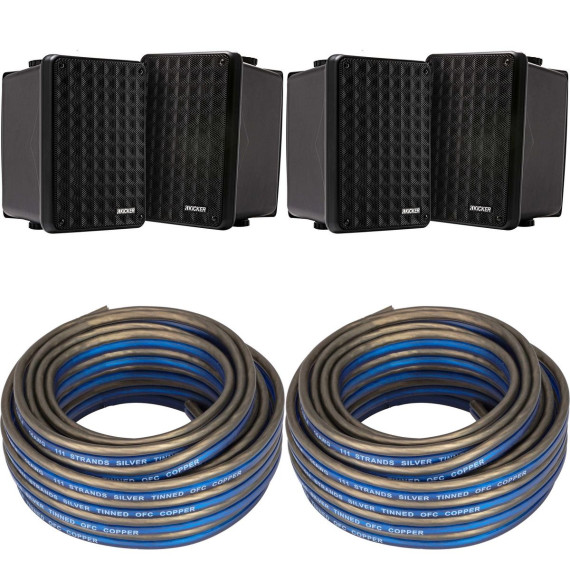 Don't compromise on sound quality for your indoor and outdoor spaces. Get the best of both worlds with this exceptional audio bundle, featuring premium speaker wire and weatherproof speakers that deliver impressive performance and durability. Upgrade your audio setup today with the Kicker speaker bundle!