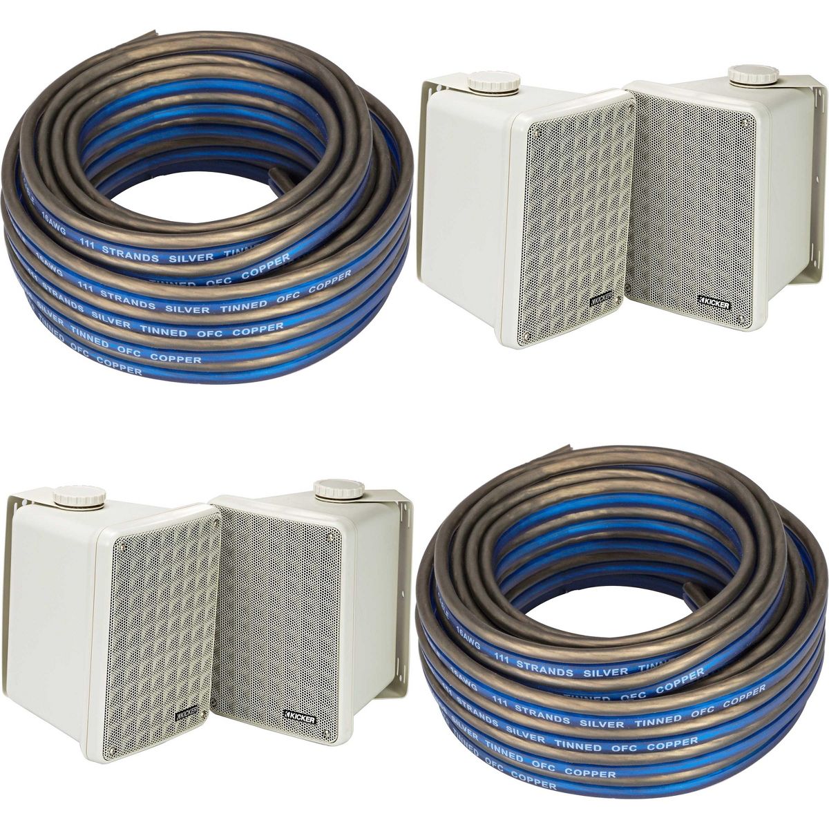 Kicker (2 Pair ) KB6B 2-Way Full Range Indoor Outdoor Speakers (Pair) Weatherproof Speakers for Patio Garage Poolside in-Home, Gray & 40ft Speaker ...