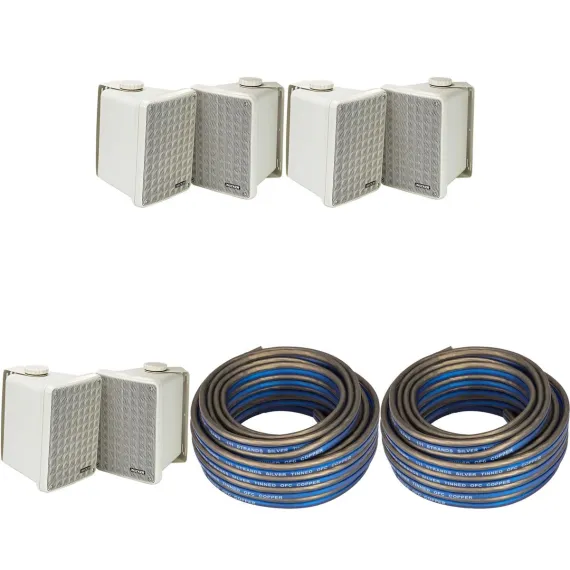 Kicker (3 Pair ) KB6B 2-Way Full Range Indoor Outdoor Speakers (Pair) Weatherproof Speakers for Patio Garage Poolside in-Home, Gray & 40ft Speaker ...
