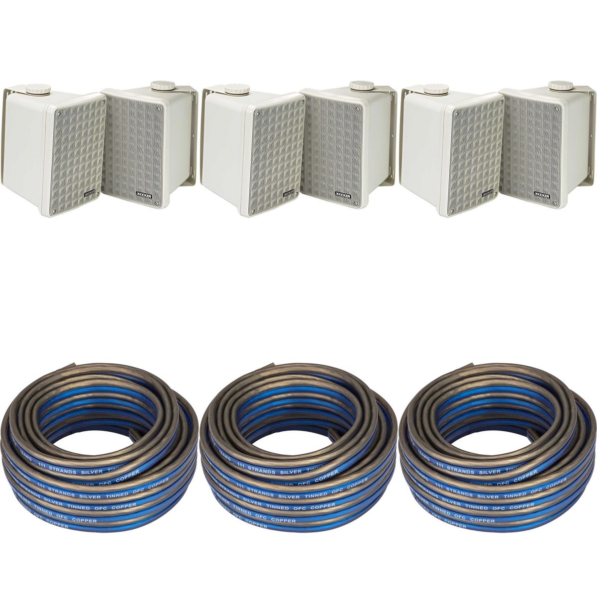 Kicker (3 Pair ) KB6B 2-Way Full Range Indoor Outdoor Speakers (Pair) Weatherproof Speakers for Patio Garage Poolside in-Home, Gray & 60ft Speaker ...