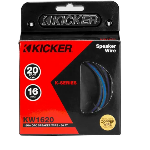 - 2x Kicker 46KW1620 Speaker Wire: 16AWG, 20 FT length, Frost Blue and Frost Clear wires for positive and negative terminals