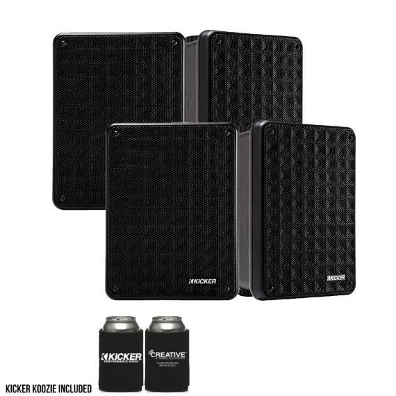 Kicker KB6 Indoor Outdoor Patio Speaker Bundle in Black 4 Speakers total- This bundle includes two (2) pairs of the 46KB6B Black Indoor / Outdoor full-range, high-efficiency Speakers, and a Kicker Coozy.