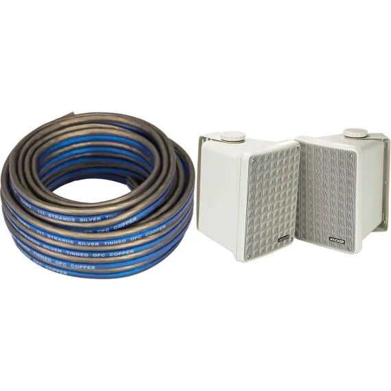 Complementing the speakers is the Kicker 46KW1620 K-Series 16AWG Speaker Wire. This 20-foot spool of 16 Gauge wire features square Frost Blue wire for positive terminals and Frost Clear for easy identification during installation. Both cables are silver-tinned and oxygen-free, ensuring excellent signal transfer and sonic accuracy. Perfect for connecting your speakers to powerful amps, this quality wire enhances your audio setup. Upgrade your sound system with this versatile bundle for immersive audio enjoyment in any environment.