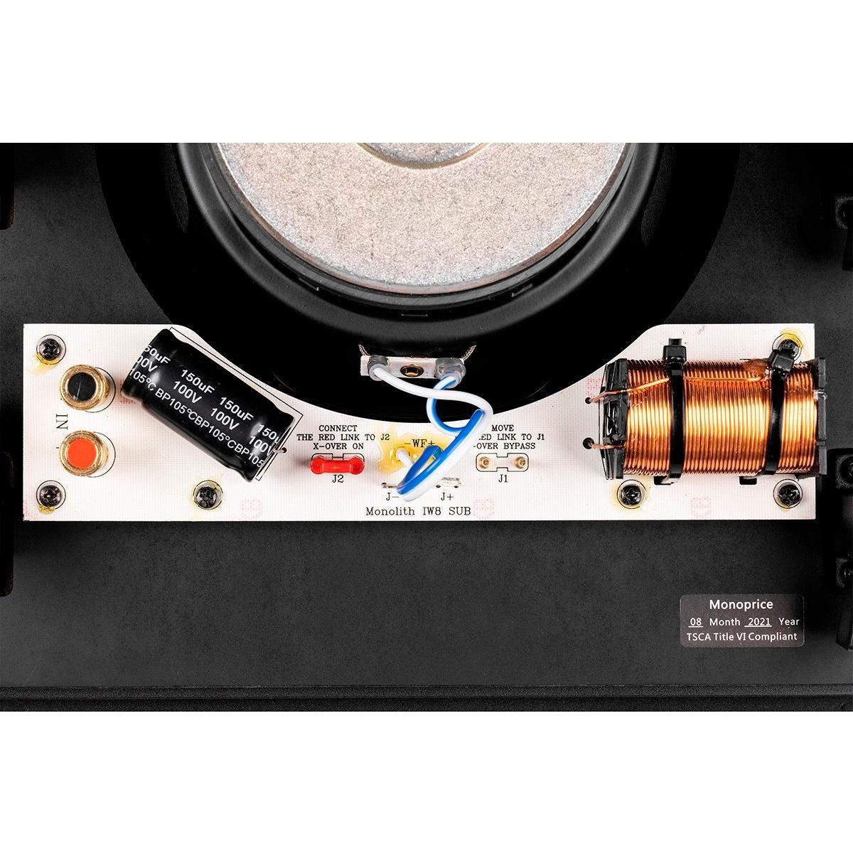 The Monolith by Monoprice M IWSUB8 8" In Wall Subwoofer adds powerful bass to your in wall or in ceiling home theater system. Equipped with high end, compact, 8" polypropylene woofer, heavy duty mounting tabs, and a paintable magnetic grille, the M IWSUB8 can be used in both new construction or seamlessly added to existing systems. The 91dB sensitivity ensures an easy pairing with just about any amplifier. The Monolith by Monoprice M IWSUB8 8" In Wall Subwoofer is designed to add thunderous bass, without taking up valuable floor space.