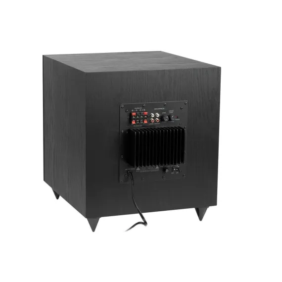This 12" sub is capable of producing 150 watts RMS (200 watts peak) output. It has a frequency response range of 25 to 250 Hz with a low-pass crossover filter, which can be adjusted through the full range. Gain and frequency knobs on the control panel allow you to adjust the crossover filter and the power output for the optimum blend and balance of bass output with your stereo or surround speakers.