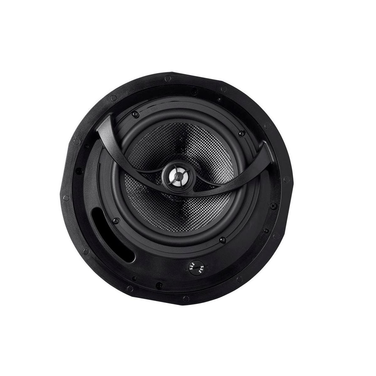 This carbon fiber in-ceiling speaker is the perfect combination of performance and style. The use of carbon fiber for the woofer means that the speaker can hit harder, go lower, and handle more power with significantly less distortion than conventional drivers. The silk dome tweeter produces clean, crisp, and clear highs and mids. You can fine tune the blend of sound using the built-in high frequency attenuator in case the sound is too bright. The metal grille can be painted to match your ceiling and attaches easily using magnets.