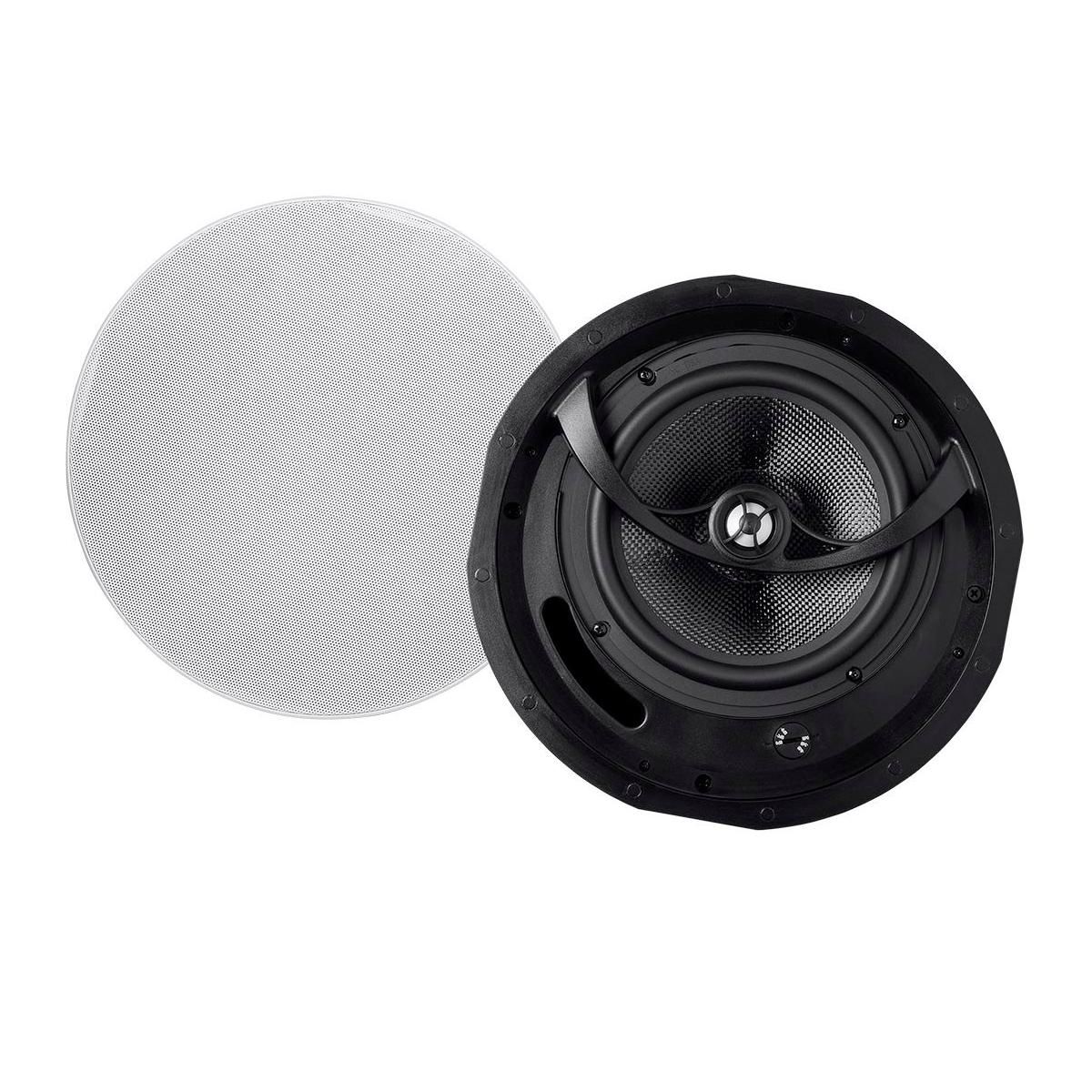 Monoprice 2-Way Carbon Fiber Ceiling Speakers - 8 Inch (Pair) With Paintable Magnetic Grille - Alpha Series