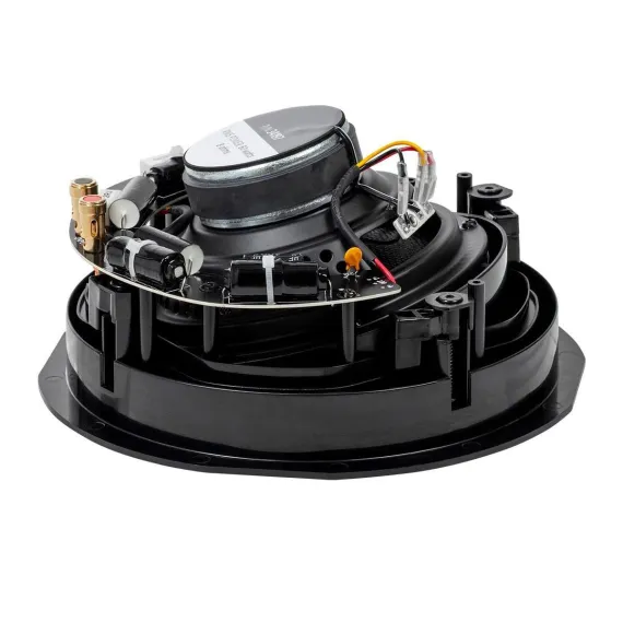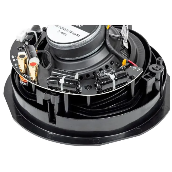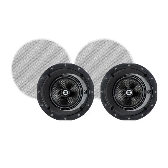 This carbon fiber in-ceiling speaker is the perfect combination of performance and style. The use of carbon fiber for the woofer means that the speaker can hit harder, go lower, and handle more power with significantly less distortion than conventional drivers. The silk dome tweeter produces clean, crisp, and clear highs and mids. You can fine tune the blend of sound using the built-in high frequency attenuator in case the sound is too bright. The metal grille can be painted to match your ceiling and attaches easily using magnets.