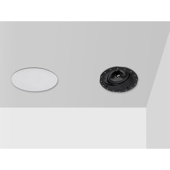 This carbon fiber in-ceiling speaker is the perfect combination of performance and style. The use of carbon fiber for the woofer means that the speaker can hit harder, go lower, and handle more power with significantly less distortion than conventional drivers. The silk dome tweeter produces clean, crisp, and clear highs and mids. You can fine tune the blend of sound using the built-in high frequency attenuator in case the sound is too bright. The metal grille can be painted to match your ceiling and attaches easily using magnets.