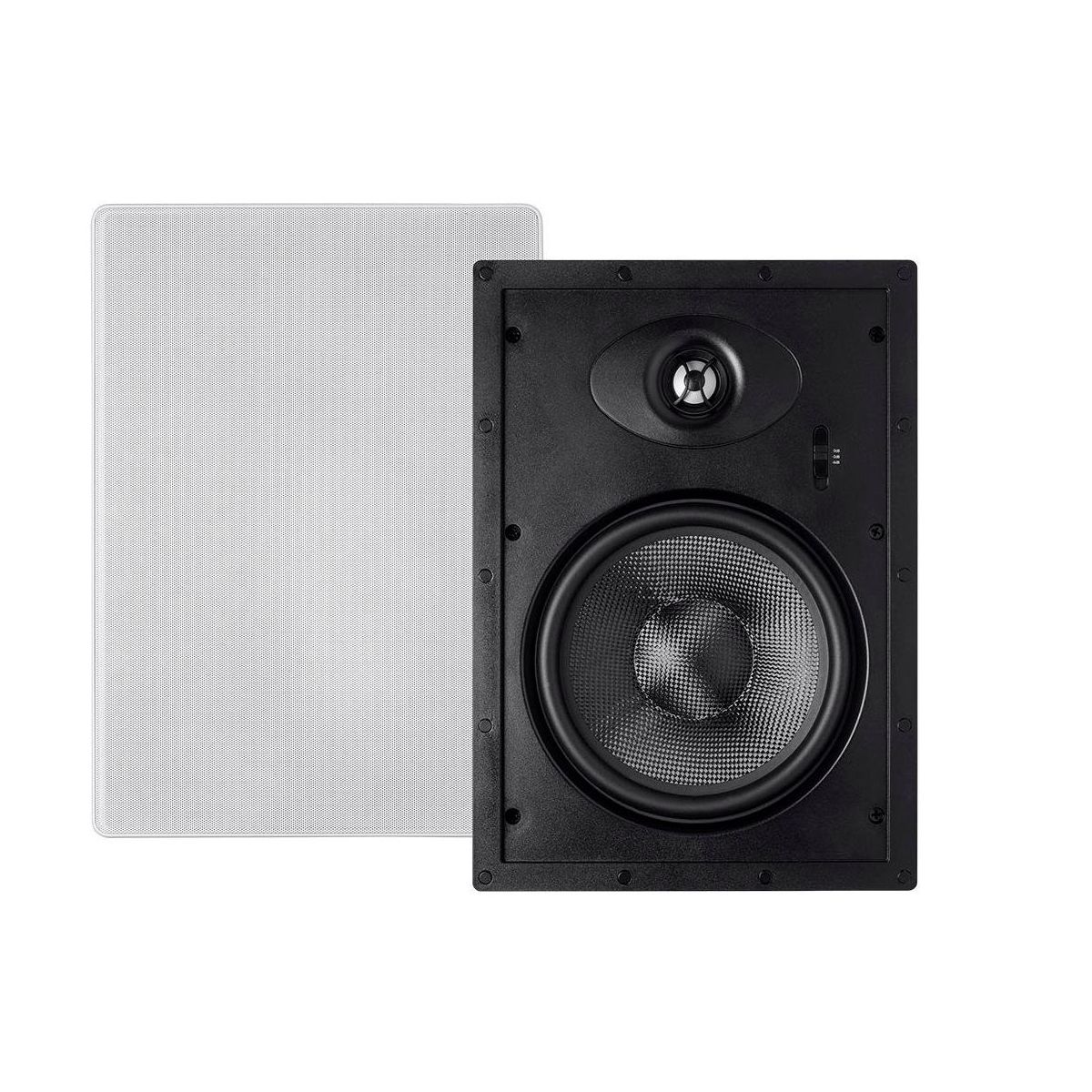 Monoprice 2-Way Carbon Fiber In-Wall Speakers - 8 Inch (Pair) With Paintable Magnetic Grille - Alpha Series