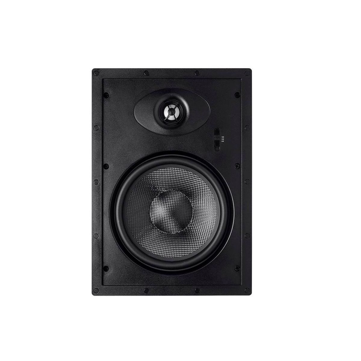 This carbon fiber in-ceiling speaker is the perfect combination of performance and style. The use of carbon fiber for the woofer means that the speaker can hit harder, go lower, and handle more power with significantly less distortion than conventional drivers. The silk dome tweeter produces clean, crisp, and clear highs and mids. You can fine tune the blend of sound using the built-in high frequency attenuator in case the sound is too bright. The metal grille can be painted to match your ceiling and attaches easily using magnets.