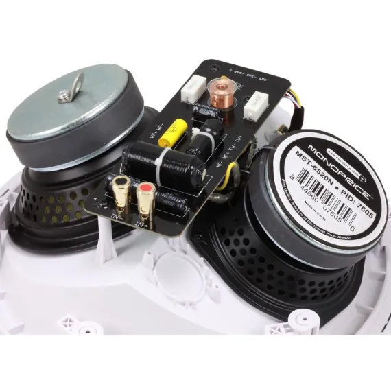 Monoprice Caliber Ceiling Speakers 6.5in Fiber 3-Way with Concentric Mid/Highs (pair) delivers rich and immersive sound for home or commercial audio setups. Designed for in-wall or ceiling installation, it blends performance with aesthetics.