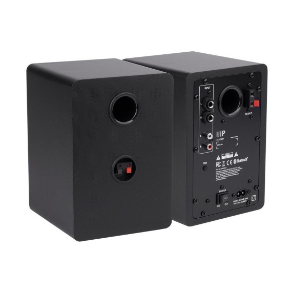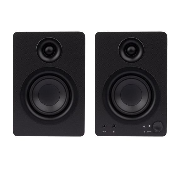 These Monoprice DT 3BT Powered Multimedia Desktop Speakers with Bluetooth deliver superior sound and advanced connectivity in a compact form factor. Featuring 40 watts of Class AB amplification driving 3.5" polypropylene woofers and 0.75" silk dome tweeters, the DT 3BT speakers are engineered to deliver fantastic sound for near field listening. In addition to the wireless connectivity using the built in Bluetooth radio, they feature three wired options for connecting to a variety of sources. The 3.5mm unbalanced TRS jack on the front panel allows you to quickly and easily connect to the headphones output on your phone or mp3 player. The unbalanced stereo RCA pair on the rear panel allows you to connect to traditional consumer electronics devices, such as DVD players, while the balanced 1/4" stereo pair on the rear panel allows you to connect to professional, balanced audio sources, such as a professional audio mixer. With their superior sound and advanced connectivity options, these speakers are the perfect complement to any home, office, gaming, or entertainment setup.