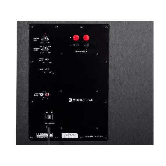 Monoprice SW-12 400 Watt RMS 600 Watt Peak Powered Subwoofer - 12in, Ported Design, Variable Phase Control, Variable Low Pass Filter, For Home Theater