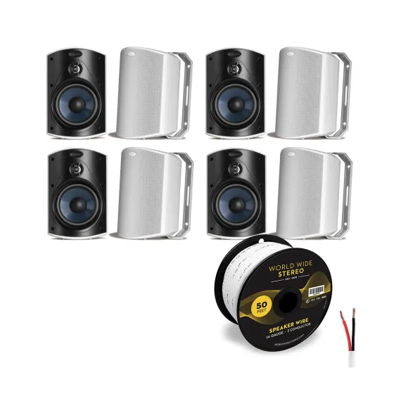 Polk Audio Atrium 4 All Weather Outdoor Loudspeaker Cable Bundle - 8 Pack (White)