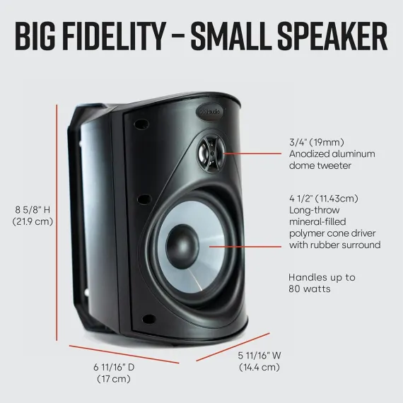 Polk Audio Atrium 4 All-Weather Outdoor Loudspeakers The compact Atrium4 loudspeaker produces high fidelity sound quality anywhere you want great sound. Its small size makes it ideal for tight out-of-way installations. By the pool around the kitchen tucked away in the family den or filling the backyard with great sound. Like our bigger Atriums the Atrium4 is built rugged to deliver years of great performance fall winter spring and summer.